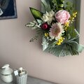 色鮮やかなブルー系の紫陽花が一足早く部屋の中で咲いたようで、部屋が一段明るく華やぎました。 とても素敵なブーケを作って頂き、どうもありがとうございました!