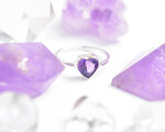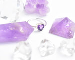 深みのあるパープルが美しいアメジストを、可愛らしいハート型にカットしてリングに仕立てました。