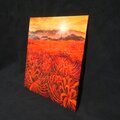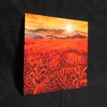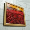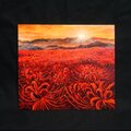「暁の光華(あかつきのこうか)」は、オレンジ色の朝焼け空と山、そして朝日に照らされた一面の曼珠沙華の畑を描いた美しい油絵作品です。この作品は、彼岸花が好きな方に特におすすめで、見るたびに心に温かい安らぎをもたらし、お部屋に華やかで穏やかな雰囲気を添えます。