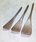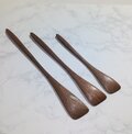 高級なウォールナット材の木べら3点セットです。ちょっとした調理に便利です。餃子を作ったり、ココアを混ぜるのにも良いと思います。柄を厚めに仕上げていますので使いやすいと思います。毛羽立ちにくい加工をしていますので、気持ちよく使用出来ると思います。