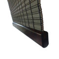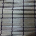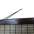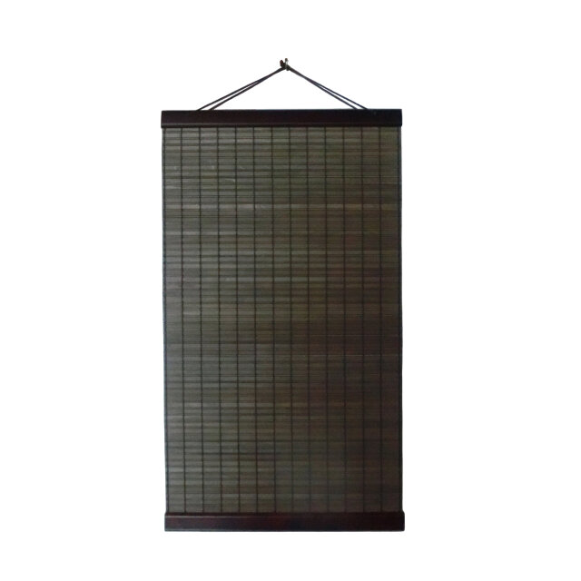 中部はシナ材を平状とヒゴ状に加工後オイルステインブラウンに着色後スダレ状に編んだ木簾です。