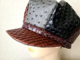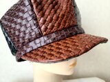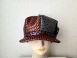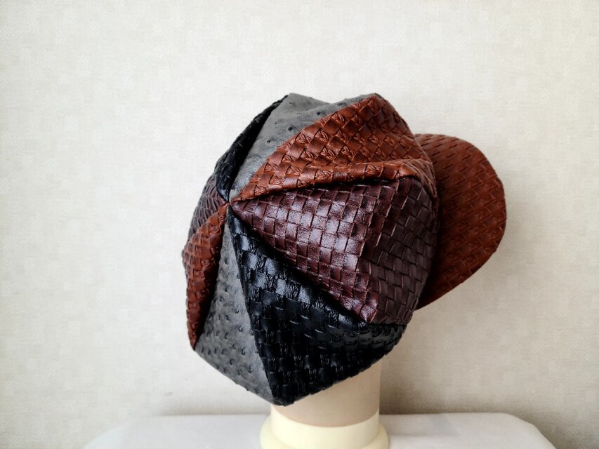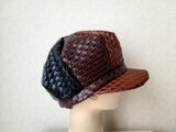 魅せる帽子☆【受注製作】フェイクレザーのグラデーションキャスケット~ブラウン、モスグリーン&ブラック