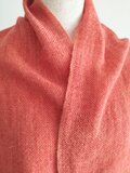 手織りのマフラーは初めて手にしましたが、薄めでさらっとした感触で手編みとはまた違った良さがあると思いました。小ぶりなので、今の時期にちょうどいいと思います。色合いもとても素敵です。