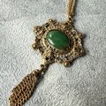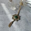 N306-ヴィンテージネックレス U.S.A. 1960's Victorian Filigree Tassel Jade