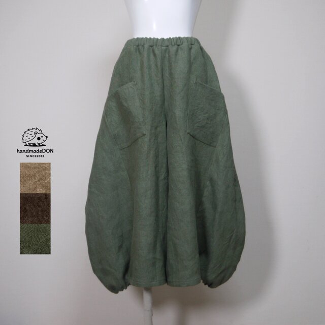 バルーンキュロット ロング◆【ドンゴロス・オリーブ】厚手リネン100%◆S・M・Ⅼ・LL
