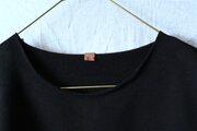 首周り・袖口・裾は切りっぱなしで、無造作に外側にくるんと巻いています。