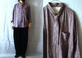 【受注制作】パープル/シルクリネンシャンブレー ボウタイ長袖シャツ