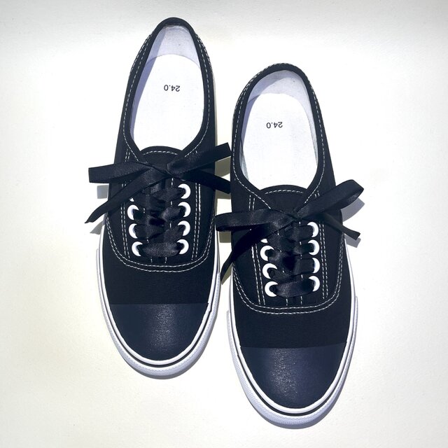 靴紐は通常の白紐とサテンリボンの2種類をお付けします。