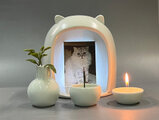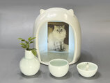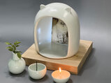 磁器のかわいいペット用仏壇です。少し青みを帯びた白マット(艶消)の磁器製です。かまくらみたいな丸いフォルムに耳がついていて癒しの中に可愛さもかねそなえています。