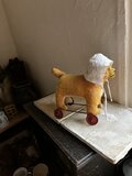 フランス 帽子をかぶった ひよこ色のわんこ 車付き