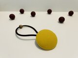 コーディネートのワンポイントにおすすめな、マスタードカラーのヘアゴムです。