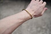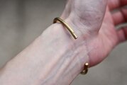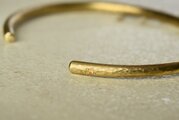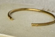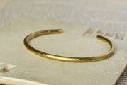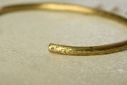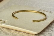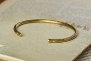 シンプルなデザインの真鍮のバングルにシトリンとイエローサファイアを留めて制作を行いました。
