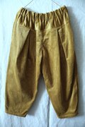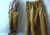 重みのあるコーデュロイの為、ウエストはホールド感のある太幅の総ゴム仕様(ゴム替え口あり)で、内側にcottonテープひもを通しています。