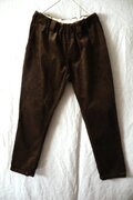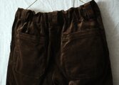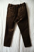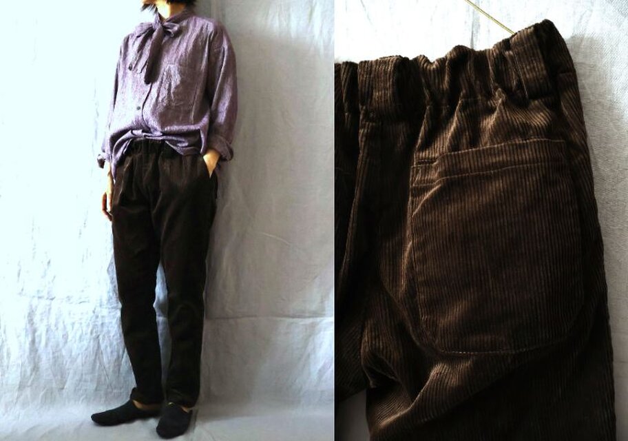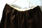 重みのあるコーデュロイの為、ウエストはホールド感のある太幅の総ゴム仕様(ゴム替え口あり)で、内側にcottonテープひもを通しています。ベルトループもありますので、お気に入りのベルトでコーディネイトも。。。