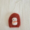 生地は、約2倍の大きさにメりノ毛糸を編んで縮絨させて(フェルト化)して仕上げました。