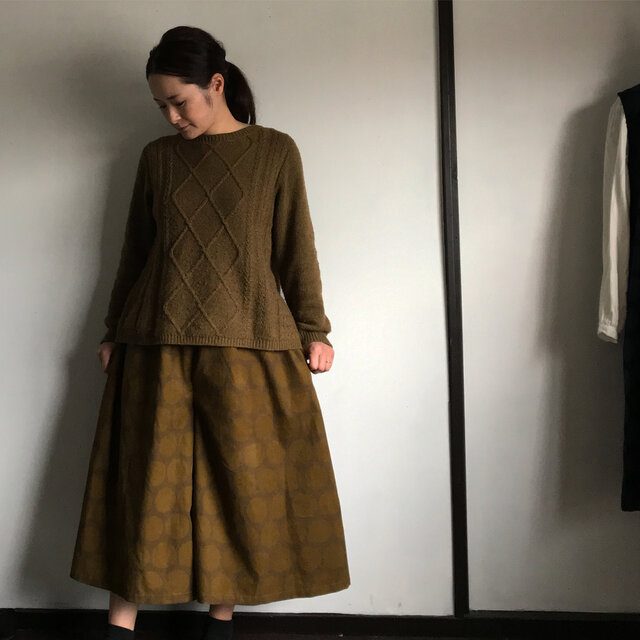 大きなドット模様のコーデュロイ素材で作ったパンツのご紹介です。