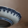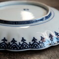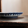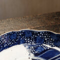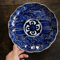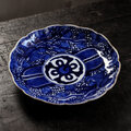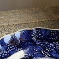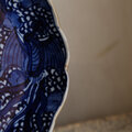 【ニュー有り】濃いベロ藍で素敵◆伊万里 花と鳳凰。染付微塵子中皿 雲 骨董・antiques 明治時代
