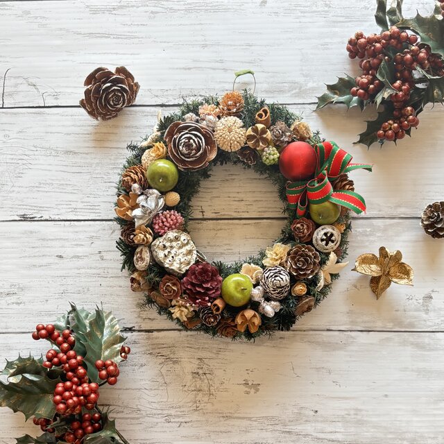 24日までセールします!赤と緑のクリスマスリース