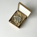 乾燥すると強靭になる紙の性質を活かし、石膏や陶器にも見える仕上がりですが、とても軽く、ブローチピンを合わせても2gほど。