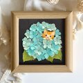 [原画]和紙ちぎり絵『紫陽花とネコ』梅雨を彩る水色の花|母の日にもおすすめの卓上アートフレーム