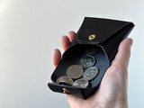 茶荷のように硬貨がジャラッと手前にスライドし、底に溜まりがちな硬貨を全て見渡せるのが最大の特徴で、引き裂きや破れに強い一枚革で構成されています。20枚の硬貨も楽々収納可能で、外出先での急な両替も安心です。