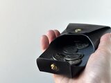 栃木レザーでしか味わえない革らしい表情とコシを活かした贅沢な一枚革構造と、手のひらに収まる絶妙な大きさと握り心地に拘りました。チラリと見える金具には、イタリアのプリム社製ホックを使用し、高級感とクラシックな佇まいに仕上げました。