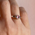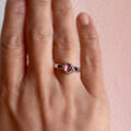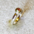 指を傾ける度に色が変わるバイカラートルマリンを装飾したリングです。