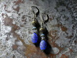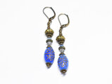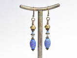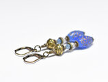 露草色のーチェコヴィンテージビーズとラブラドライト&アクアマリン、蓮華ブラスを繋いだピアスです。