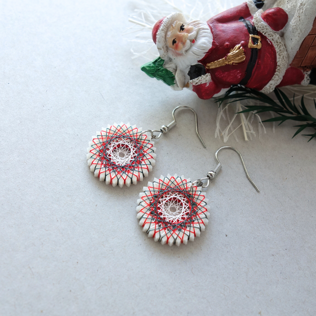 クリスマスリース|赤・白・緑の絹糸イヤリング|ナチュラルコーデに似合う大人のクリスマスギフト