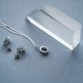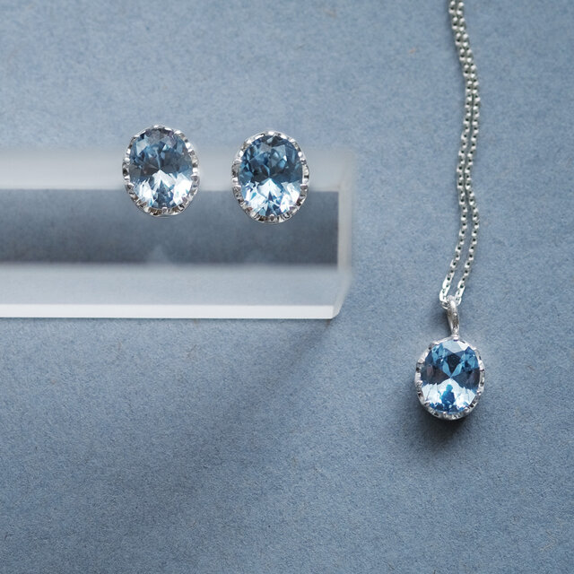 2点set) アクアマリン クラウン ネックレス & ピアス シルバー925