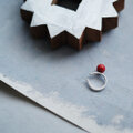 プレーンなデザインに一粒の赤珊瑚が添えられた