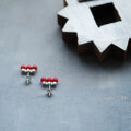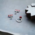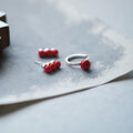 小粒の赤珊瑚を横に並べた横長のピアスと