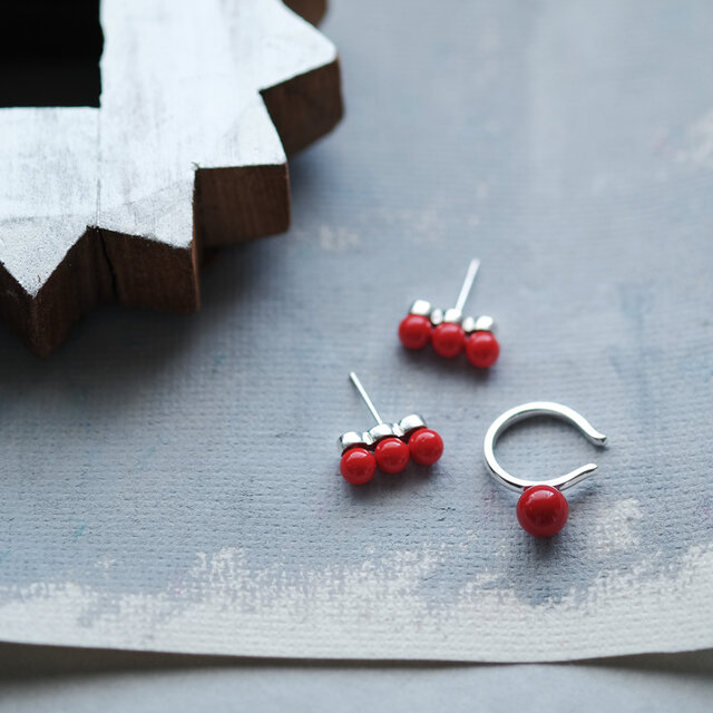 2点set) 赤珊瑚 ピアス & イヤーカフ シルバー925