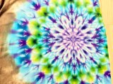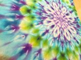 全て染色されるタイダイ染め、絞り染めの作品群。