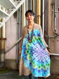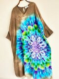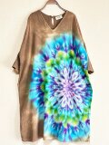 タイダイ ゆったりワンピース 孔雀大曼荼羅 ベージュブラウン Hippies Dye最新作 HD24-95