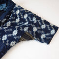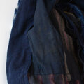 藍無地や絣、縞模様といった異なる生地が、実用のために、そして美意識のままに継ぎ合わされ、荒く力強い刺し子がそれらをしっかりと繋ぎとめています。