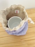 天日干しリネンのハギレとキバタ麻で作った小さな巾着です。