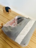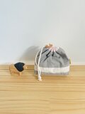 天日干しリネンのハギレとキバタ麻で作った小さな巾着です。