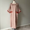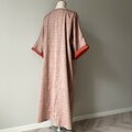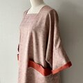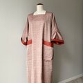 スクエアネックですので、中にタートルネックのニットを重ね着しても素敵です。お袖の内側とポケット口には八掛を使用しております。お袖は少し折り曲げていただくと、八掛が見えて見映えがいたします。