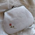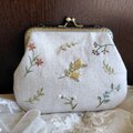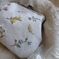 生成りのハーフリネンに野の花を手刺繍したがま口ポーチです。