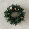 ヒムロスギとブルーアイスをベースにナンキンハゼの実やインディアンコーンなどをつけた小さなツリーとリース。