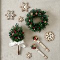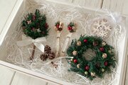 小さな小さなツリーとリース、カトラリー、スノーフレーク(大3小2)のディスプレイセット。