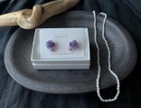 アメジストのパープルの中にブルーがかった、アマゾナイトが少し覗いてて、上品さの中に爽やかさのあるデザインです!
