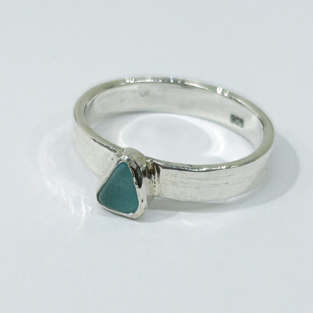 シンプルな平打ちリングに小さなシーグラスを一粒だけあしらっております。