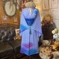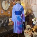 【着物 リメイク セミロング ワンピース ドレス 洗える 化繊 帯サッシュベルト 和洋折衷 レトロ 古着 ハンドメイド ラベンダー×碧のグラデーション麻の葉 KW-1125】