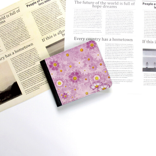 優しい彩りのコスモスデザイン-二つ折り財布(かぶせ蓋タイプ)です。