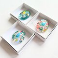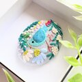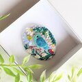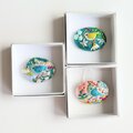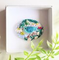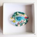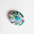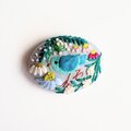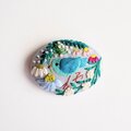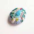 落ち着いた色合いのコットン地に鮮やかな色合いが魅力的なこのブローチは、オーバル型45ミリ×35ミリのサイズです。