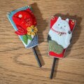 縁起の良いモチーフなので、お祝い事や猫好きさんへのギフトとしてもおすすめです。胸には金のビーズを下げています。