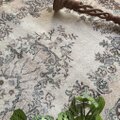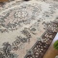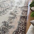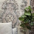 やわらかなベージュトーンはインテリアに馴染みやすく、ブラウンの縁取りが空間をきゅっと引き締めてくれます。リビングのセンターラグとしてはもちろん、寝室やサロンなど落ち着いた空間にもよく合います。観葉植物やウッド家具との相性も抜群で、自然光の下ではより優しい印象に。