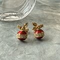 クリスマスオーナメントをモチーフにした、ゴールドトーンのピアス。